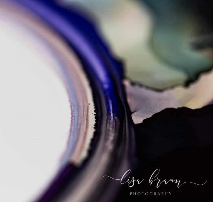 Today I can be found in my art studio experimenting with many different types of mediums, just as much as I can be found out taking photos and editing them. I am especially fond of using Alcohol Ink, and then photographing those pieces utilizing my Macro lens. As you can see with the image above, where I choose to the focus the photograph really draws the eye. The textures and color variations of the Alcohol Ink really give the pieces interest and depth. I utilize many different techniques using the Ink, but the effects I get with bubbles and metallic are my favorites.